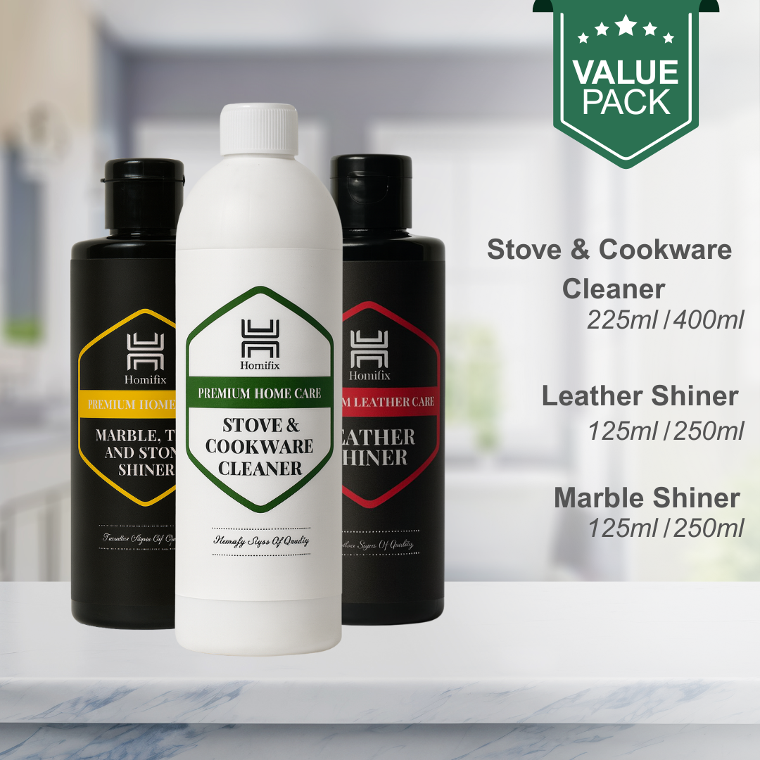 Value Pack Of 3 | Cookware & Stove Cleaner + Marble Shiner + Leather Shiner